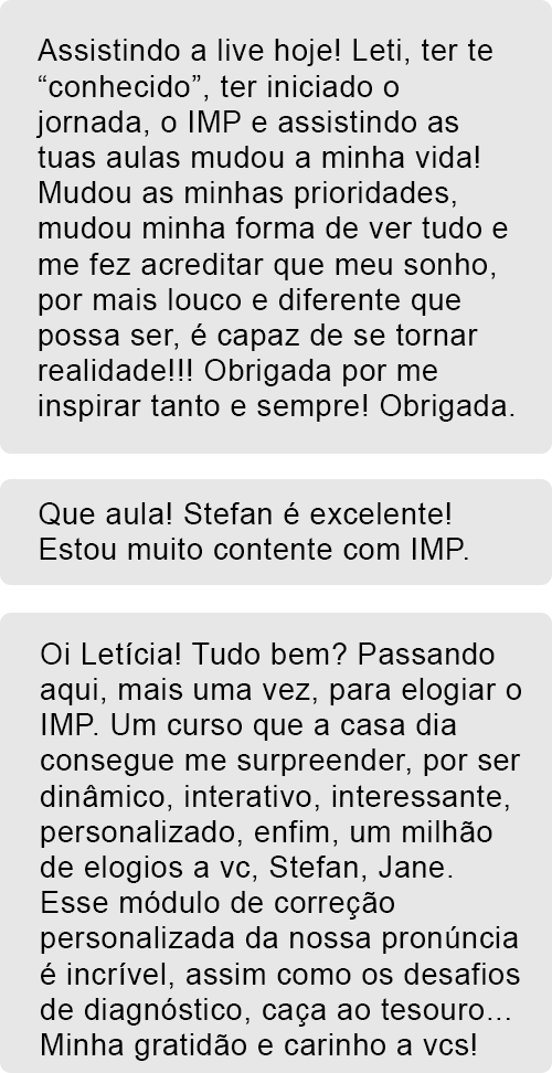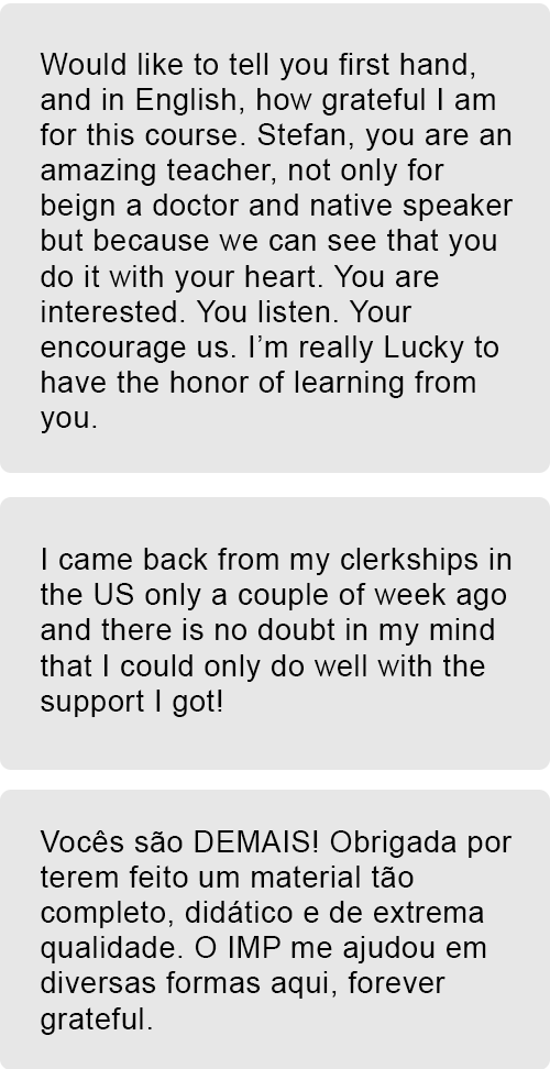 O curso IMP (Inglês Médico na Prática) foi lançado no ano passado - tanto que os feedback que vocês viram são dos alunos do IMP que tem aulas ao vivo com médicos americanos também