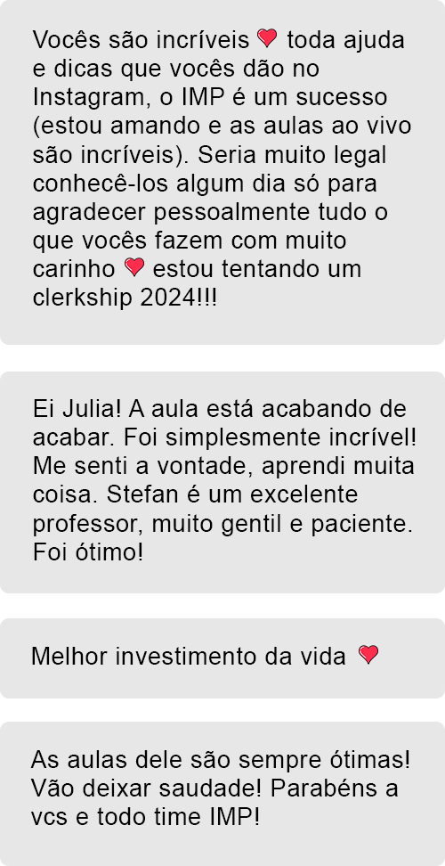 - Acesso ao curso completo de IMP Estágios e às palestras ao vivo de IMP Estágios (o IMP estágios vem junto dele, e vocês fazem as mesmas aulas ao vivo nos primeiros 4 meses)